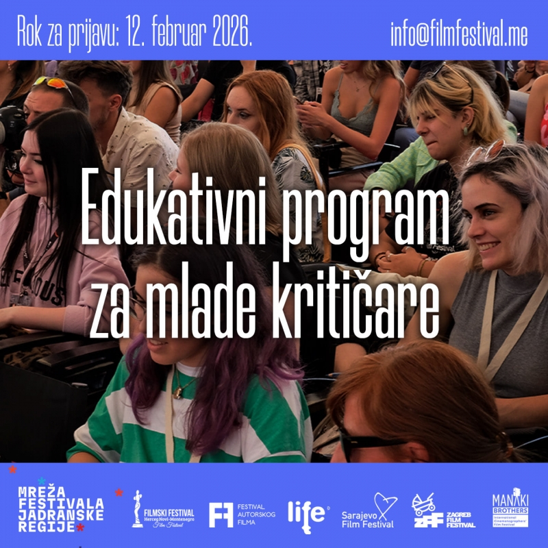Mreža festivala Jadranske regije (Sarajevo Film Festival, Filmski Festival Herceg Novi, Zagreb Film Festival, Festival autorskog filma Beograd, Ljubljanski međunarodni filmski festival i festival Manaki brothers), poziva studente filmskih akademija i srodnih fakulteta, koji su zainteresovani da uče o pisanju filmske kritike, da se prijave na radionicu koja će se održati od 06. do 11.03. u Herceg Novom.