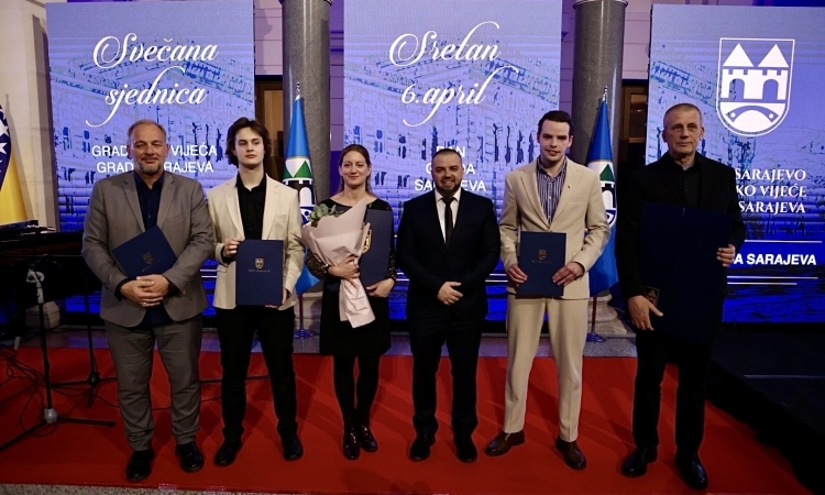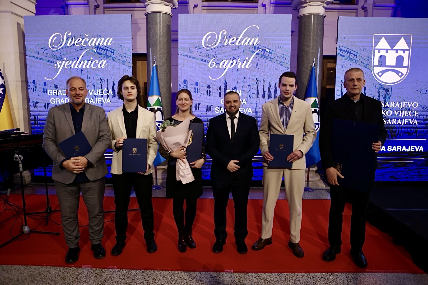 Šestoaprilske nagrade ovogodišnjim dobitnicima uručili su gradonačelnik Sarajeva Samir Avdić i predsjedatelj Gradskog vijeća Alen Girt na Svečanoj sjednici.
