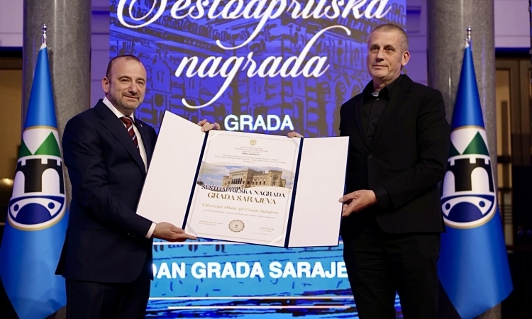 Nagradu je na svečanosti održanoj u gradskoj Vijećnici u ponedjeljak, 6. aprila 2026., preuzeo jedan od osnivača i predsjednik Skupštine Obala Art Centra Sarajevo Dževad Mujan.