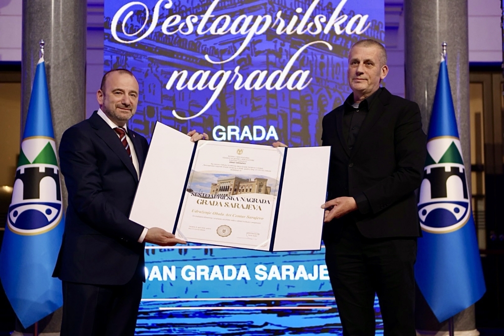 Šestoaprilska nagrada Grada Sarajeva Udruženju Obala Art Centar Sarajevo dodijeljena je za izuzetan doprinos kulturi i umjetnosti